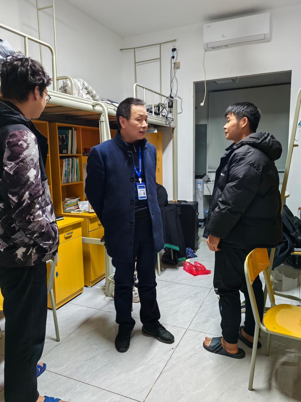 新学期伊始,为深入了解开学初学生的思想动态、适应情况及生活情况,排查学生宿舍环境卫生和安全隐患状况,及时发现问题并解决,确保各项学生管理工作的有序、平稳开展和推进,2月12日晚,动物科学系负责人与全体辅导员,一起深入走访学生寝室,第一时间给学生们送上关怀与温暖。