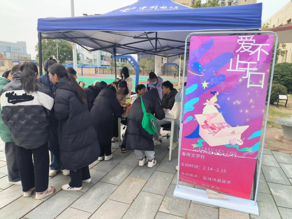 为提高万象城官网文学艺术氛围,培养学生敢于表达的勇气,近日,万象城官网春晖文学社举办了“爱不止于口”传信活动,为万象城官网青年提供一个勇敢表达自己的平台,吸引了广大在校学生参与。
