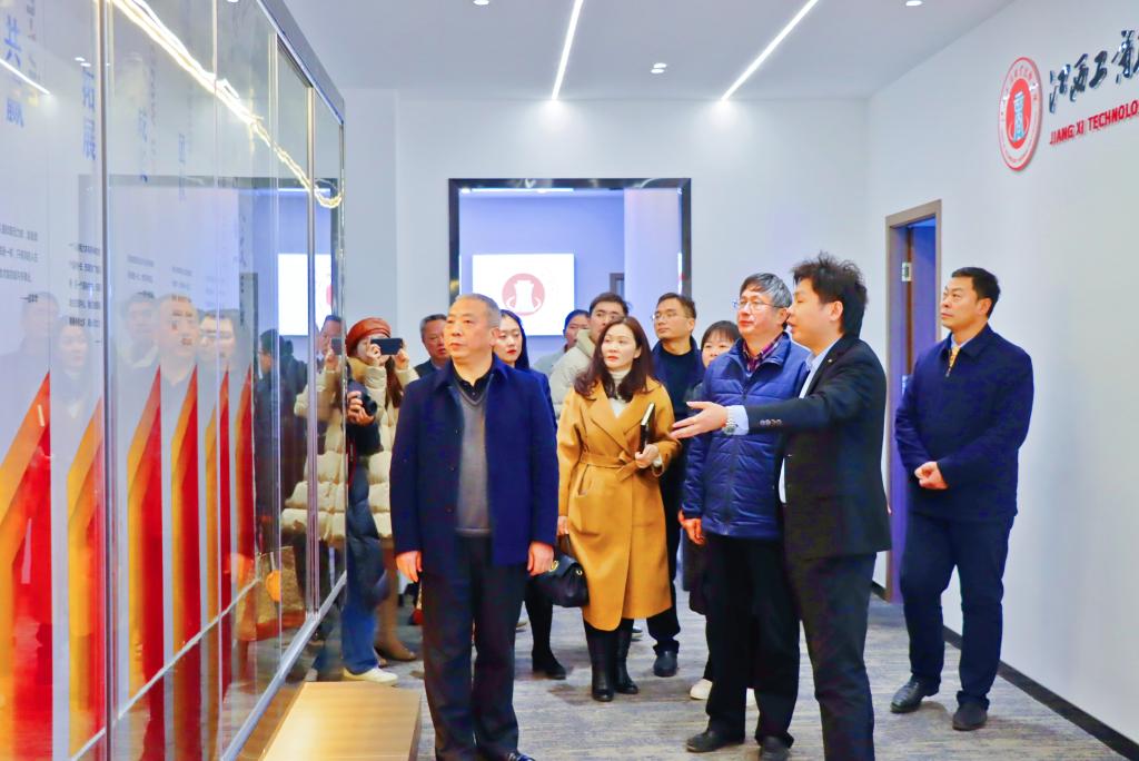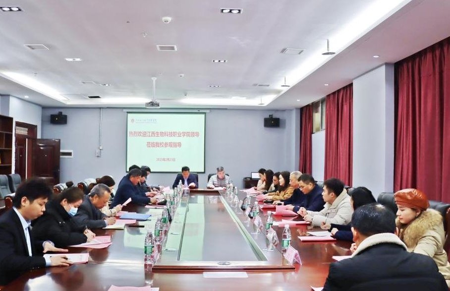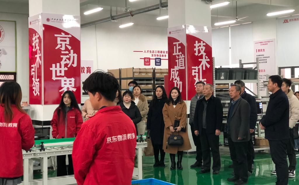 为了解校企融合发展新实践新模式,加强与兄弟院校交流合作,助力学院教学工作高效开展,2月23日,学院党委副书记刘顺华带领教务处处长、经济贸易系主任、副主任及相关专业教师一行人前往江西工商职业技术学院进行参观交流,并与该校行政主要负责人胡业华,党委副书记马江华,副校长辛绍南、黄泽友,京东物流教育大区经理徐世文等进行座谈。