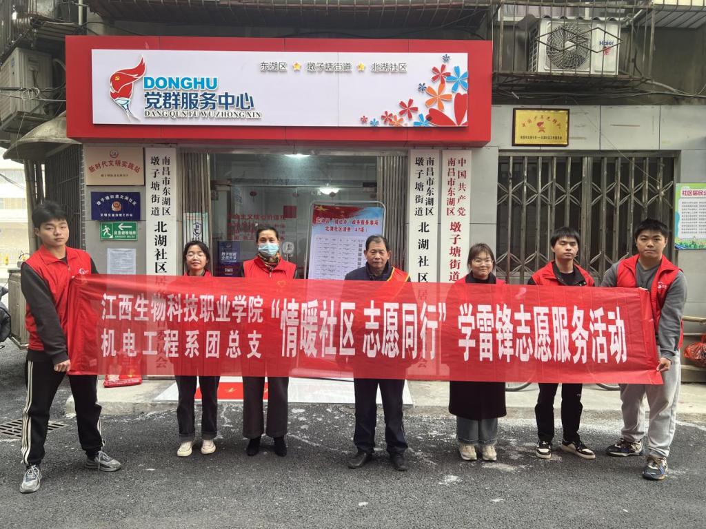 万象城官网机电工程系团总支组织志愿者来到南昌市北湖社区开展“情暖社区志愿同行”学雷锋志愿服务活动。