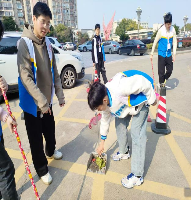 同学们领到任务后,立马奔赴学院的每个角落,认真而又细致地打扫起来。在打扫过程中,同学们都发扬不怕苦、不怕脏的雷锋精神。对于难以清扫的卫生死角,同学们主动用手去一点一点地刮,对于草地和花丛中的小垃圾,同学们弯腰用手一步一步地捡。