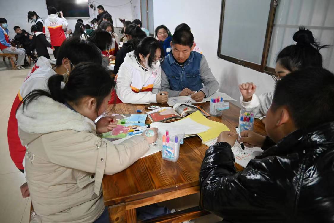 志愿者们为孩子们带来了精心编排的舞蹈节目,在舒缓轻快的音乐中,志愿者们用舞姿传达着对孩子们的关爱与温暖,孩子们在场下也跃跃欲试,现场一片温馨美好。之后,志愿者与孩子们三两一组结对,有的在桌前一起用彩笔描绘心中的图景,有的在纸上你一句我一言地互相执笔写字交流,还有的在一起玩起了手工折纸。志愿者们通过今天的志愿活动,了解这所特殊学校的历史,纷纷为这所特殊学校的初衷和坚守感到钦佩。