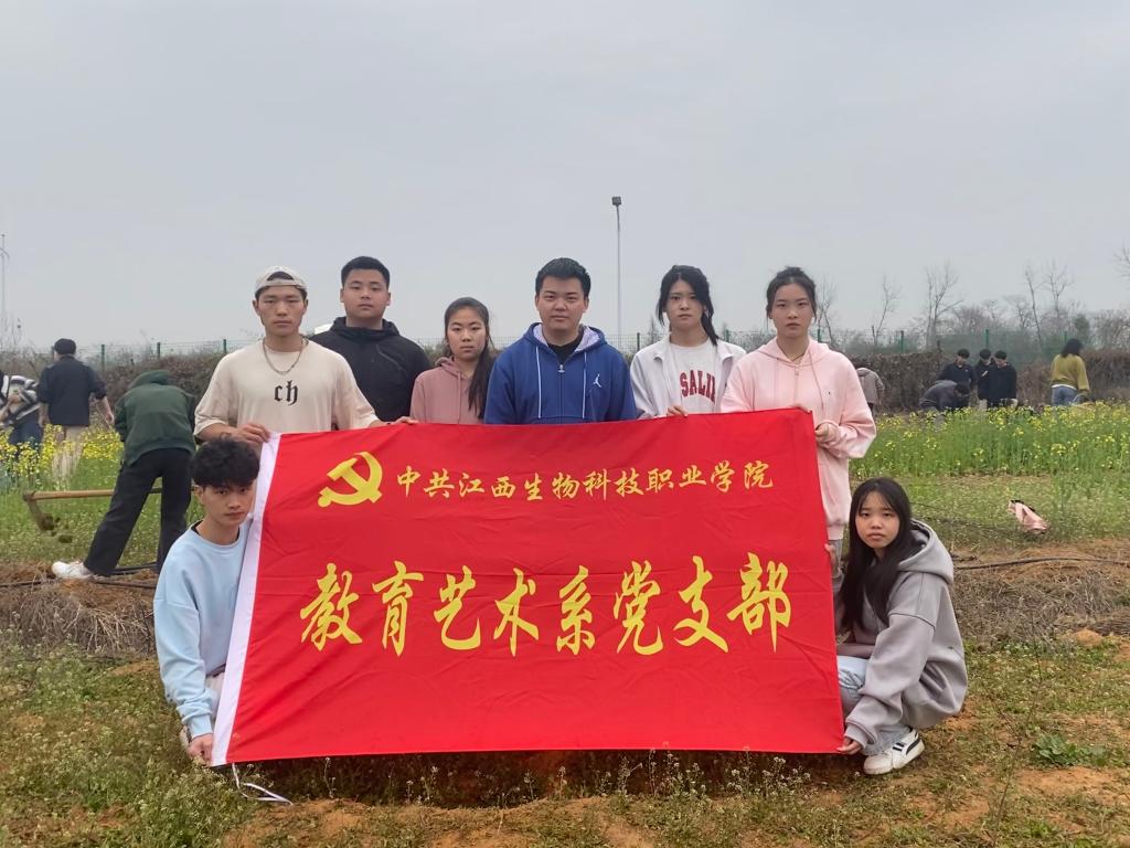 春回大地,万物复苏。3月8日,为提升入党积极分子的社会责任感和环保意识,教育艺术系党支部组织入党积极分子走进生物科技园,开展义务植树活动。