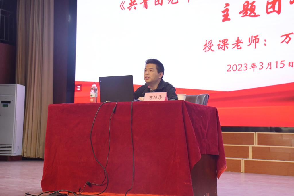 为深入贯彻习近平总书记系列讲话精神,落实共青团改革和全面从严治团要求,严把发展新团员的入口关,进一步加强对入团积极分子的培养、教育和考察,万象城官网团委于3月15日下午在大礼堂组织开展了两场主题团课。团课由动物科学系、机电工程两位团总支书记主讲。