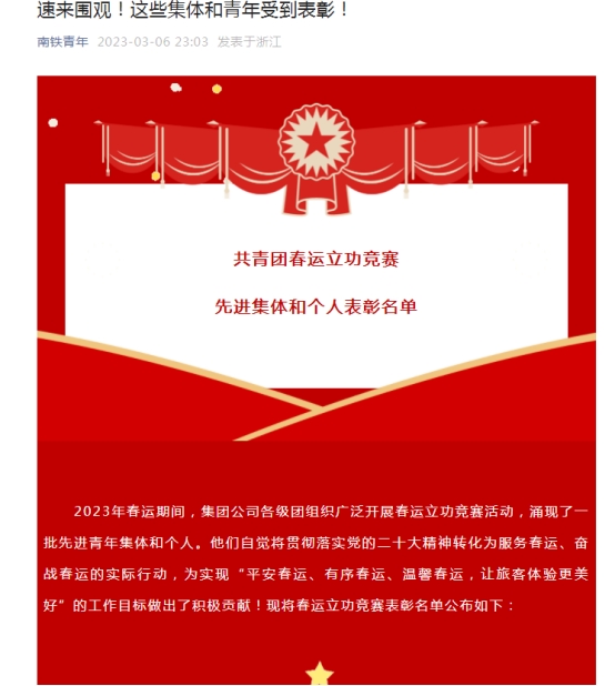 2023年春运期间,机电工程系2022级学生朱杨星在寒假期间,积极践行大学生返乡社会实践活动,参加了家乡庐山站的春运返乡志愿服务工作,并被中国铁路南昌局集团有限公司评为“优秀志愿者”。