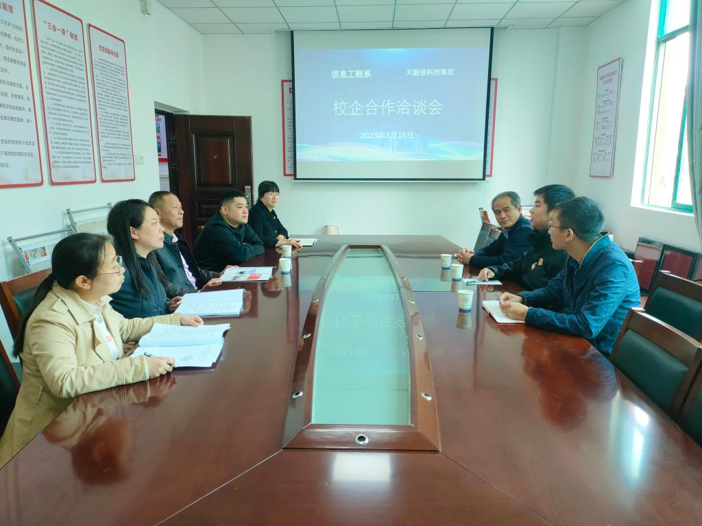 3月15日,天融信科技集团一行3人来万象城官网信息工程系开展校企合作洽谈会,学院党委委员、副院长李军民以及该系负责人、书记、副主任、副书记出席了会议。