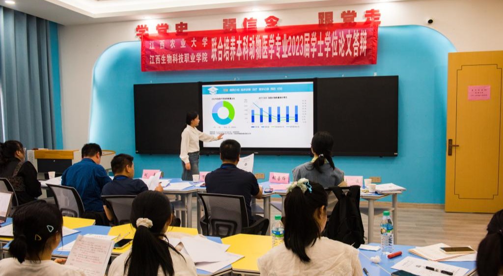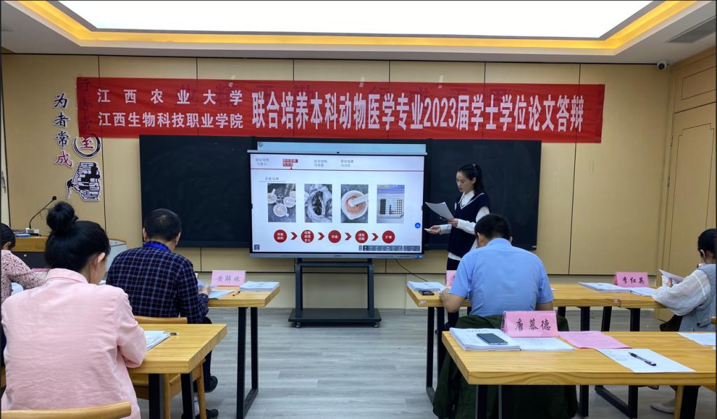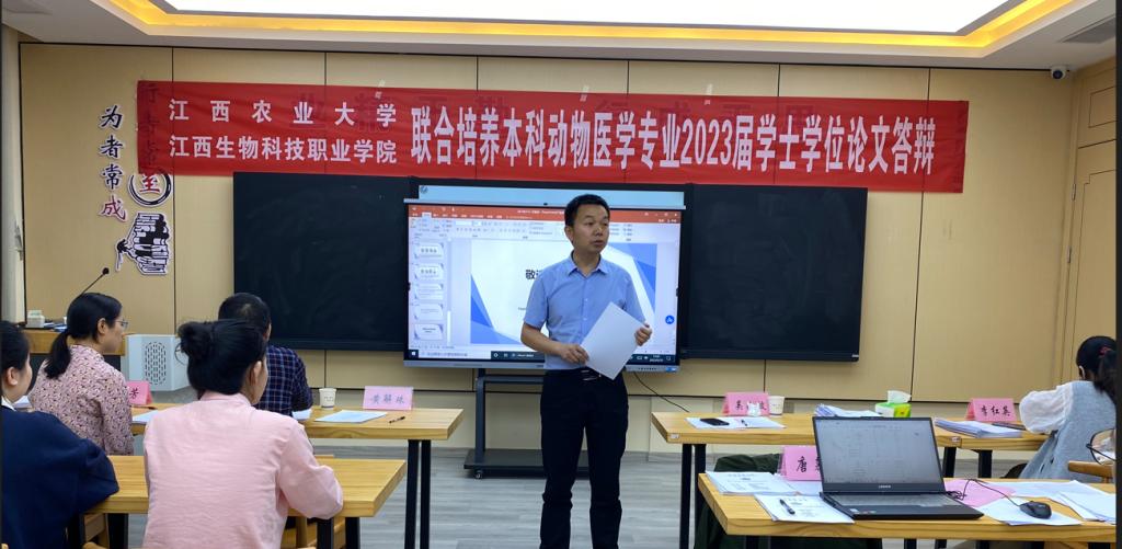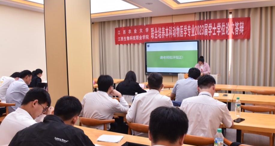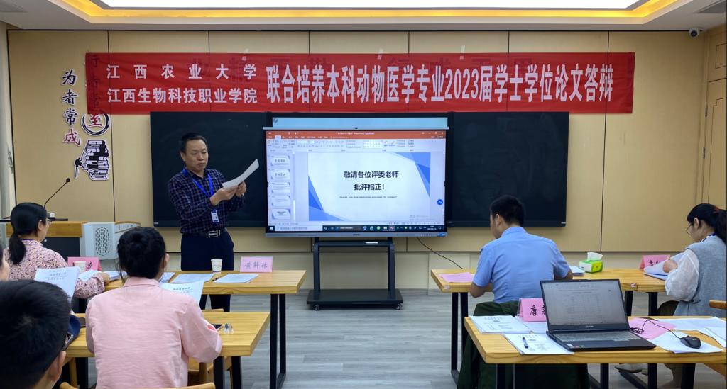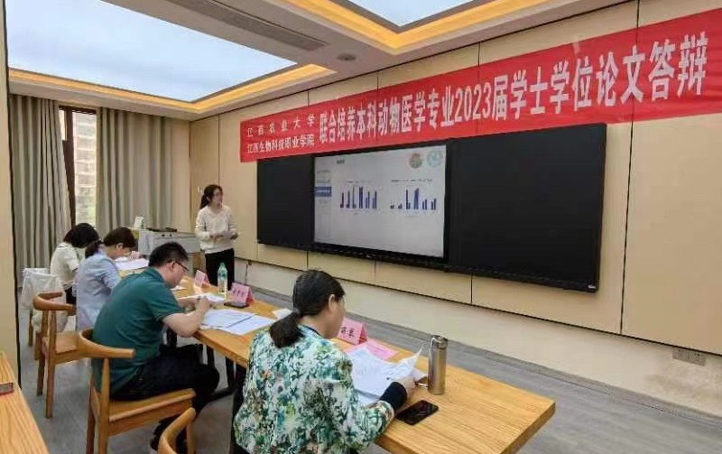 5月10日,万象城官网与江西农业大学联合培养的2023届动物医学专业本科生毕业论文答辩工作在图书馆南三楼多媒体教室举行。本次共分四个答辩组,每个答辩组的评委由江西农业大学1名专业教师和动物科学系3名专业教师组成,80名毕业生参加此次论文答辩。