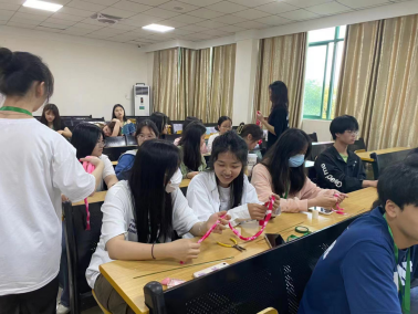 本次社团活动由社团指导老师骆佳仪老师担任活动的主要内容讲解,其中包括绢花种类的介绍、制作工具的认识、和绢花制作技艺等三个方面的内容。在授课讲解过程中,同学们十分积极与活跃,并积极与老师互动。在老师的精心指导下,同学们都一一完成了各自的绢花作品。
