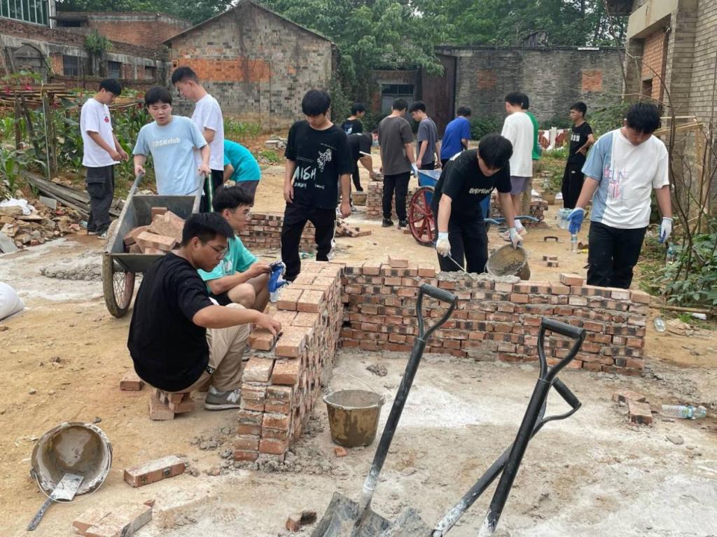 活动内容涵盖《工程施工》、《建筑工程测量》、《建筑材料》等专业基础课程,测量实训指导学生对校园明德楼区域进行数字测图和全过程实操实训,分为外业测量和内业绘图两部分。施工实训指导学生进行水泥砂浆的制备、不同的墙体砌筑方法训练,钢筋的绑扎等内容。重点培养学生团队合作精神、热爱劳动、劳动实践提升技能操作水平。