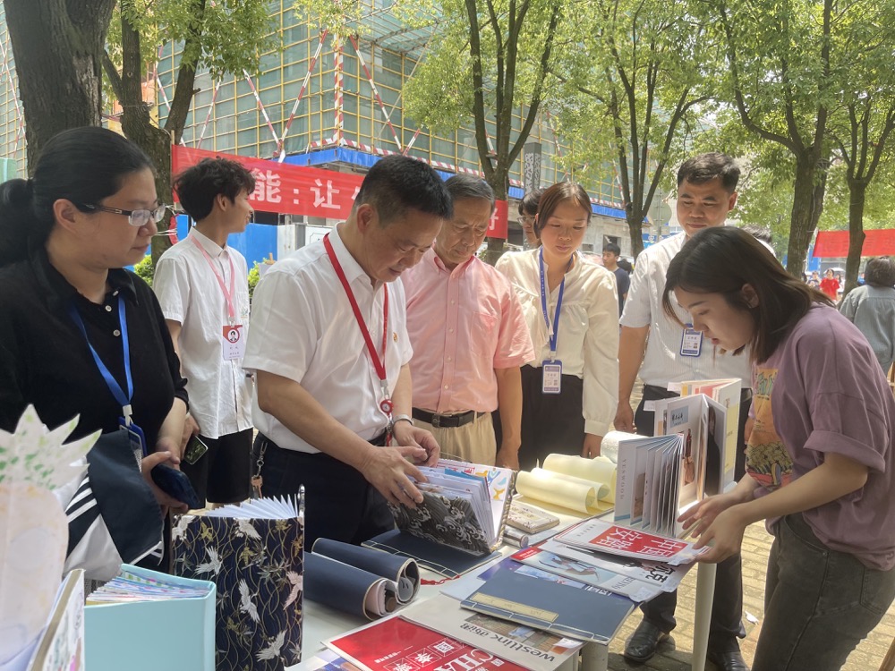 5月19日,教育艺术系围绕活动主题“技能:让生活更美好”,开展内容贴近生活实际、贴近专业领域、贴近产业行业的职教周活动“艺满校园——教育艺术系艺术作品展”。学院领导侯昌芹、李达,宣传部负责人等来到教育艺术系职教周活动现场观摩指导。