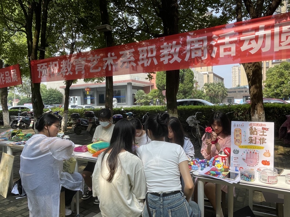 活动期间,教育艺术系教师评选出参展的作品有一百余件,包含风景水粉画、平面及色彩构成、文创产品设计、动漫创意设计、幼儿手工、书籍装帧等作品。其中大部分作品在校级、市级、省级等技能大赛中获奖,作品风格新颖,展现出教育艺术系学生能工巧匠和高素质技能风采,以及良好的审美情趣和艺术修养。同时,还有手工黏土主题技艺现场制作,引得师生驻足观赏,操作体验。