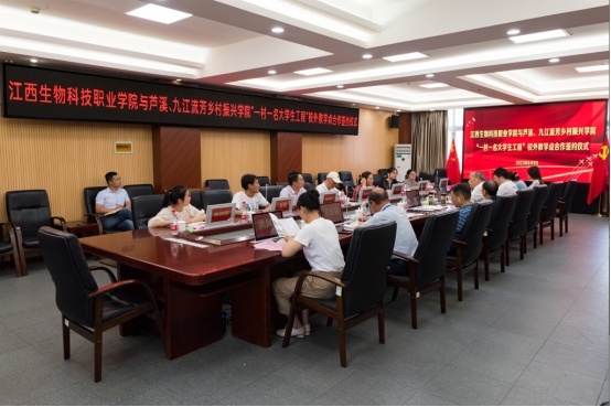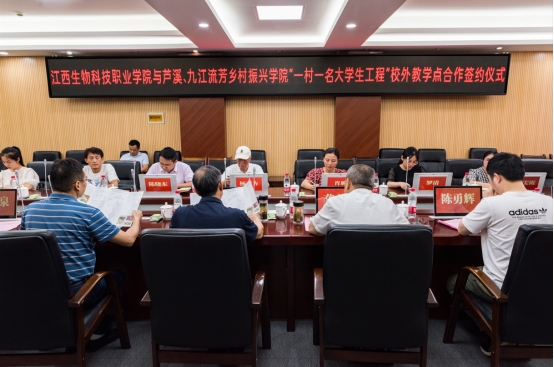6月9日,万象城官网与芦溪乡村振兴学院、九江流芳乡村振兴学院举行“一村一名大学生工程”校外教学点签约仪式。学院党委委员、副院长李达、萍乡市农业农村局科教科负责人、芦溪乡村振兴学院负责人、九江流芳乡村振兴学院负责人,学院招生办、教务处、经济贸易系、园林工程系负责人参加了签约仪式。