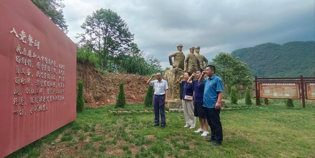 在鲜艳的党旗下,党支部书记带领全体党员重温了入党誓词,不忘入党时的承诺,时刻牢记党的目标和宗旨;参观了犁壁山苏维埃政府旧址,一件件实物、一段段历史诉说着老一辈革命先烈刻苦求真、坚持斗争、无私奉献的光荣事迹,深深激励着每一位党员要铭记历史、以史为鉴,不忘初心跟党走。