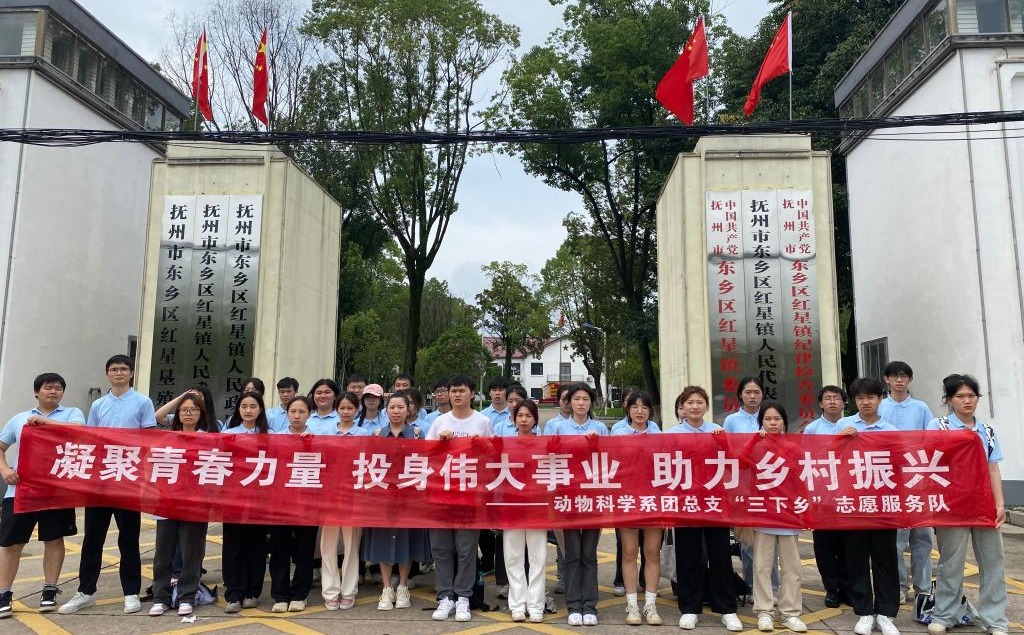 为了深入开展学习贯彻习近平新时代中国特色社会主义思想主题教育、学习宣传贯彻党的二十大精神,引导万象城官网动物科学系学生积极投身到乡村振兴的伟大事业中去。近期动物科学系联合江西省科技特派团东乡畜禽团、东乡区科技局在抚州市东乡区组织主题为赓续红色血脉 厚植“三农”情怀 助力乡村振兴 的暑期“三下乡”社会实践活动。江西省科技特派团东乡畜禽团全体成员,东乡区科技局领导,动物科学系党员教师以及20余名学生参与此次社会实践活动。