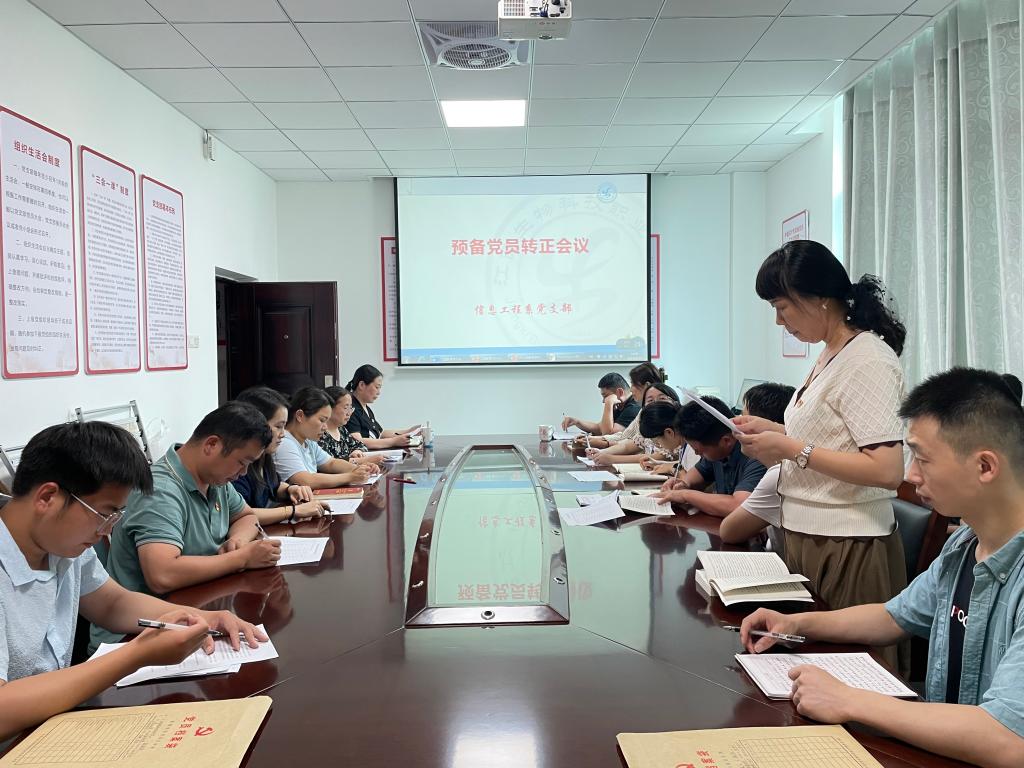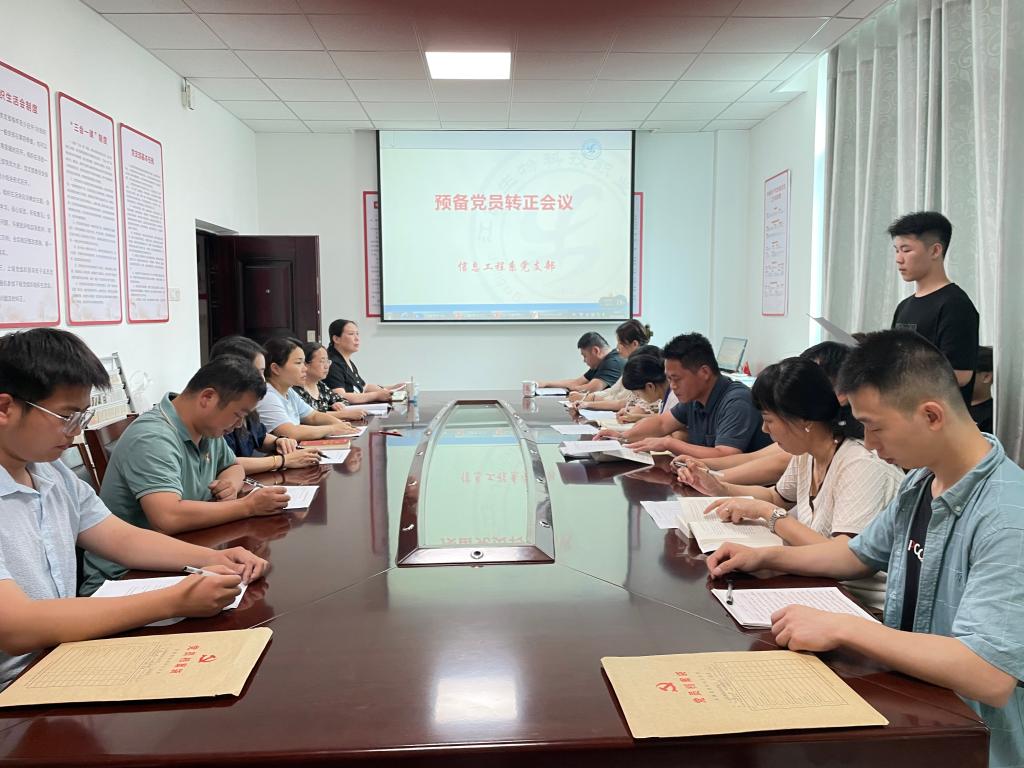 根据支部发展党员工作计划,经征求党员和群众意见、支部委员会审查同意,信息工程系党支部于6月21日在党员活动室召开支部大会,讨论预备党员转正问题。会议由党支部书记主持,支部全体党员及11名预备党员参加了此次会议。