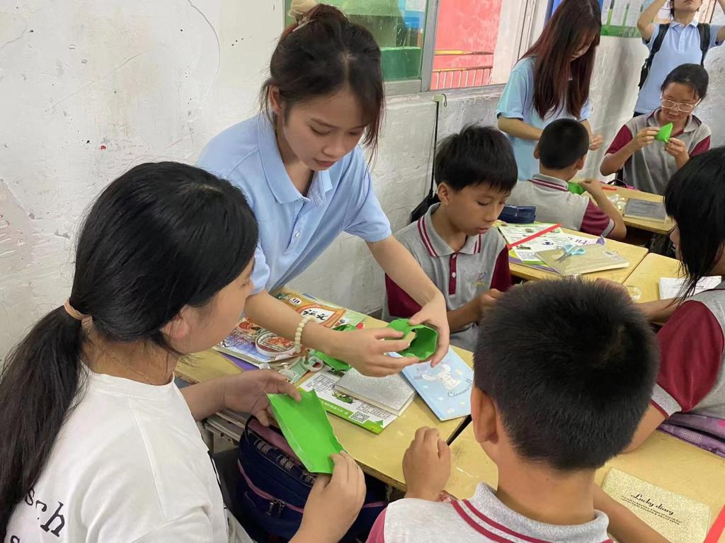 来到学校进入班级后,为了消除孩子们的陌生感,志愿者首先与孩子们做了一个“你画我猜”的开场小游戏;同时由于本次活动临近端午节,志愿者为孩子们讲解了端午的来源以及相关知识,并带领孩子们做起了手工粽子、给大家发放笔记本等文具。通过这些活动,拉近了彼此距离,同时也对每个学生性格等方面的具体情况有了进一步的掌握。