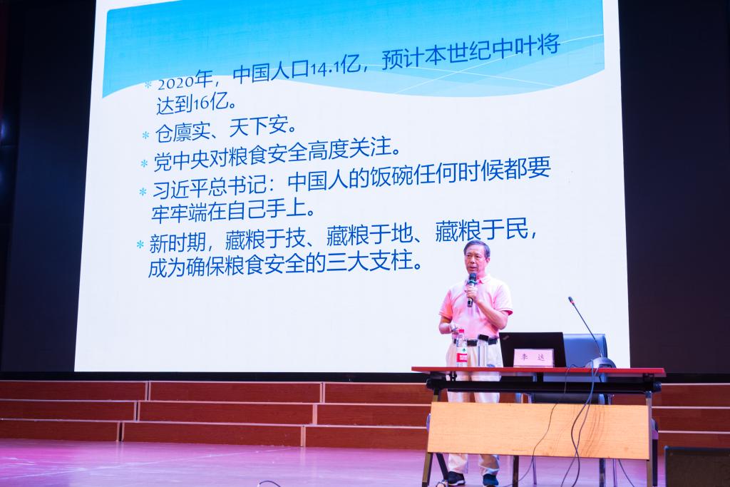 学院党委委员、副院长李达教授为学生讲授了《习近平总书记的“三农思想”》,他从“为什么要提粮食安全”、“国家粮食安全战略”、“为什么粮食要立足国内”、“怎样确保国家粮食安全”4个方面进行了深入浅出地讲解。重点阐述了确保国家粮食安全,把中国人的饭碗牢牢端在自己手中的重要性。