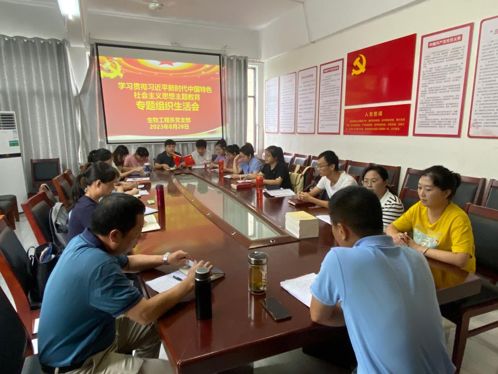 按照学院党委相关文件精神及通知要求,生物工程系党支部于8月28日在党员活动室召开学习贯彻习近平新时代中国特色社会主义思想主题教育专题组织生活会,支部全体党员参加,党政办督导员到会指导。会议由党支部书记主持。