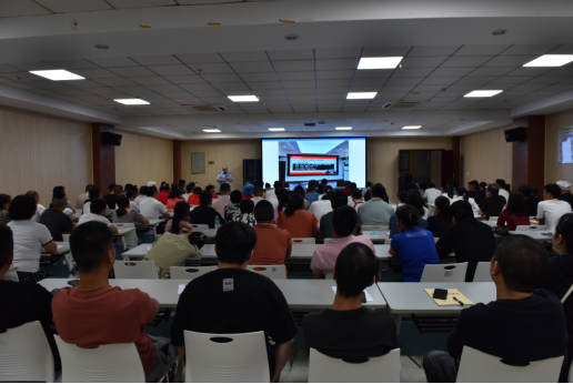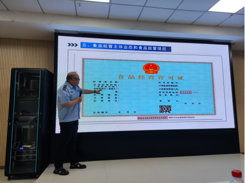 培训会上,刘林岗就“餐饮服务单位食品安全操作规范”进行了授课,分别从“食品安全舆情处置”和“校园食堂日常注意要点”等方面进行了专题培训。他通过内容丰富的课件,结合日常执法中发现的问题,针对校园食堂食品安全管理存在的薄弱环节,重点从人员管理、设备要求、环境卫生、原料采购贮存、索证索票、加工制作、清洗消毒、食品留样、餐厨废弃物处置等方面进行了精讲与分析。培训内容生动详实,通俗易懂,现场参训人员聚精会神聆听,认真做好笔记。