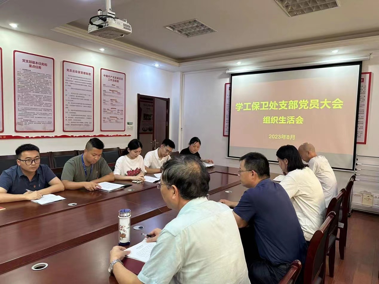 8月31日下午,学院学工保卫处党支部召开学习贯彻习近平新时代中国特色社会主义思想主题教育专题组织生活会。会议由党支部书记主持,院党委委员、副院长詹绍成同志以普通党员身份参加会议。学院督导列席指导。