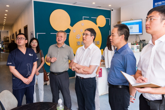 刘新农一行先到宠颐生动物医院红谷滩分院,宠颐生动物医院院长汇报了宠物医院的组成、功能分区,人员组成等。刘新农政协常委特别关心医院的经营状况以及医院的难处,了解到在疫情三年的冲击下宠物医院受到很大的冲击,疫情开放后消费降级医院收入降低。