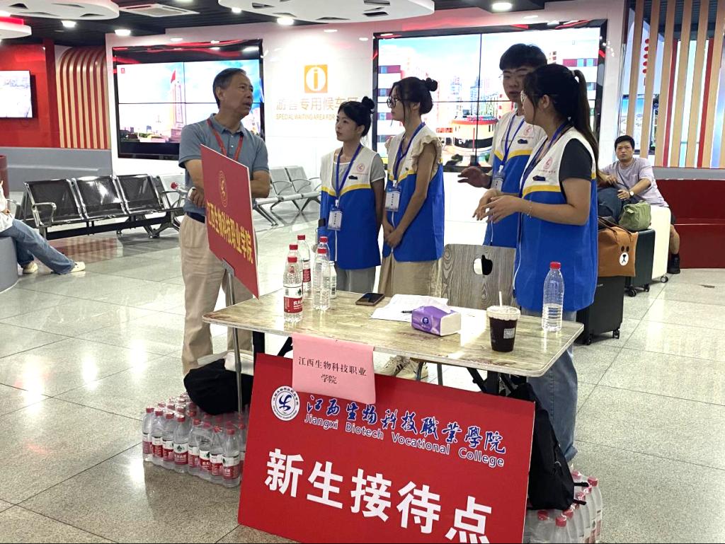 每个站点的出站口,处处可以看到学院接站师生志愿者忙碌的身影。有的高举学校的引导牌,欢迎每一位抵达南昌的新生与家长,有的帮助新同学扛起行李,有的耐心地解答疑问并有序引导新生、家长们前往候车点再由专车直接统一接到学校。