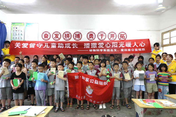 乡村振兴,一个都不落下。为传递爱心、关爱留守儿童、助力乡村振兴,动物科学系党支部和团总支组织师生利用暑期时间到乡镇中小学开展为“播撒爱心阳光 关爱留守儿童 助力乡村振兴”的暑期社会实践活动,通过借助宠物陪护犬、互动小游戏等打开留守儿童们的心扉。通过这次传递爱心、汇聚暖流的活动,关爱了留守儿童的成长,让乡村振兴更加有情有味。