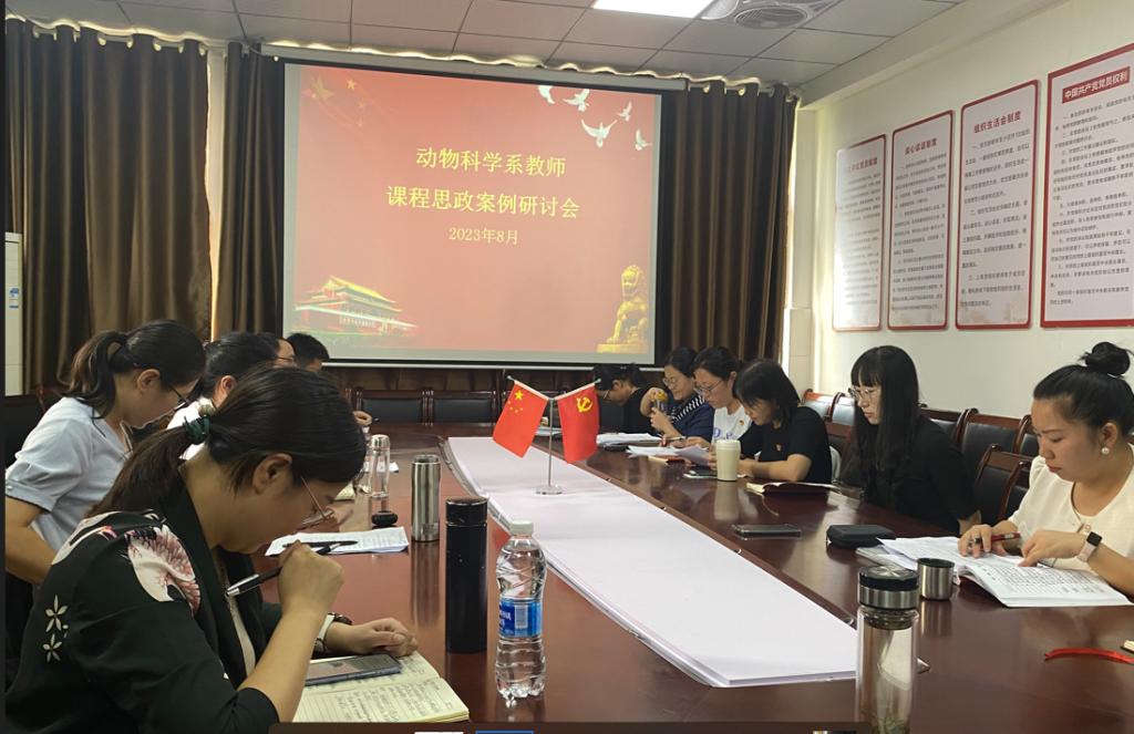“收好一段渠、种好责任田”。为了在日常教学工作中更好落实的习近平总书记指示,使各类课程与思政课同向同行、形成协同效应,使德育与智育相统一,推动实现三全育人。在8月底新学期即将开始时,动物科学系组织教师,在党员活动室集中学习习近平总书记对教育事业的相关指示和党的教育政策,开展集体备课、深挖课程思政元素、汇编课程思政案例、交流课程思政技巧,将课程思政润物无声、溶盐于水、落到实处。