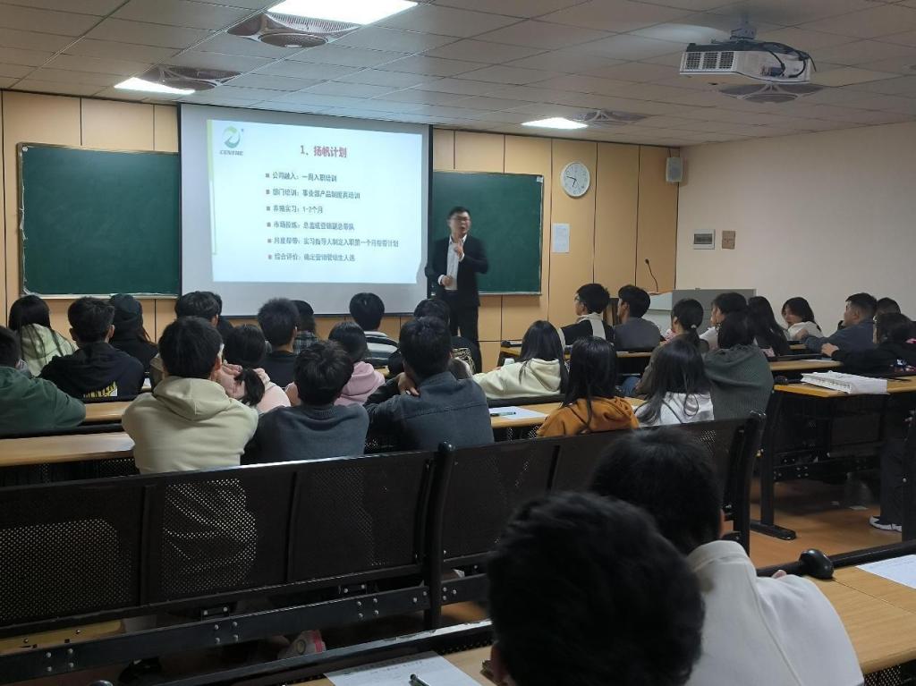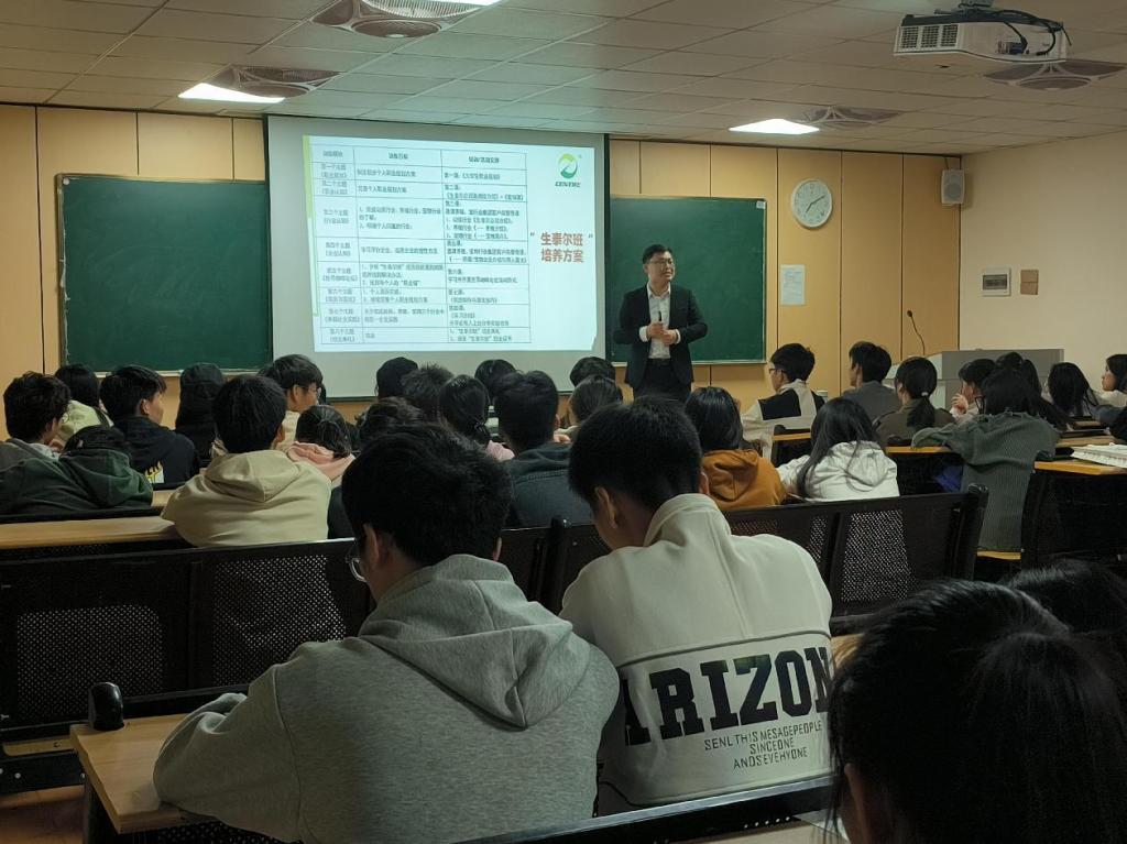 会上,生泰尔公司人力资源部负责人总监李伟良详细介绍了生泰尔公司营销管培生培养路径,并说明了“扬帆计划”及“启航计划”内容。就“生泰尔班”培养方案及细节进行了细致讲解,并回答了现场同学们对职业规划的提问。