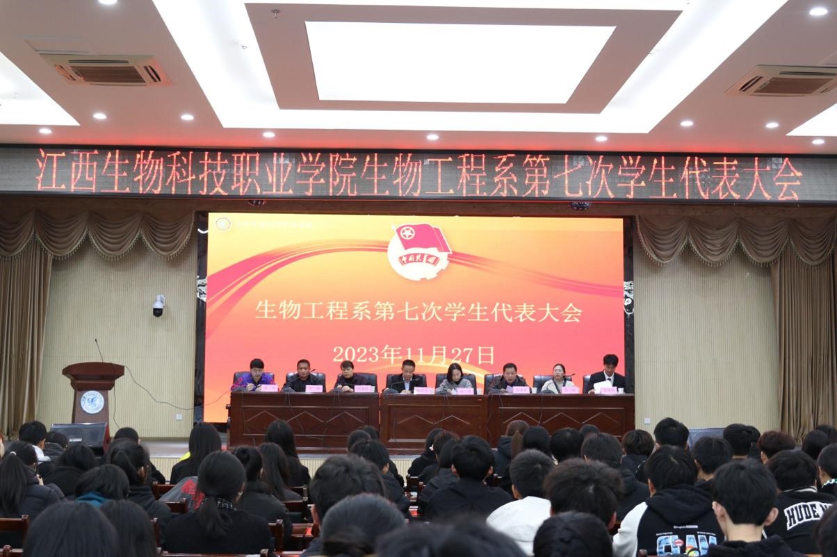11月27日晚,万象城官网生物工程系第七次学生代表大会在知行楼二楼多功能厅隆重召开。学院党委委员、副院长侯昌芹,学院团委副书记,学工处副处长,生物工程系主任,生物工程系党支部书记及党支部副书记出席了本次会议,大会由生物工程系学管干事主持,参加本次大会的还有生物工程系学生会全体成员及185名学生代表。