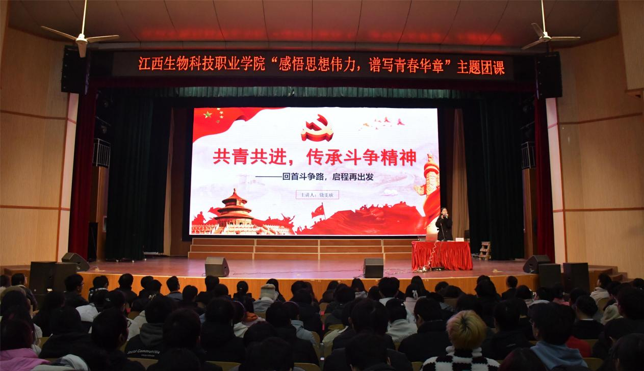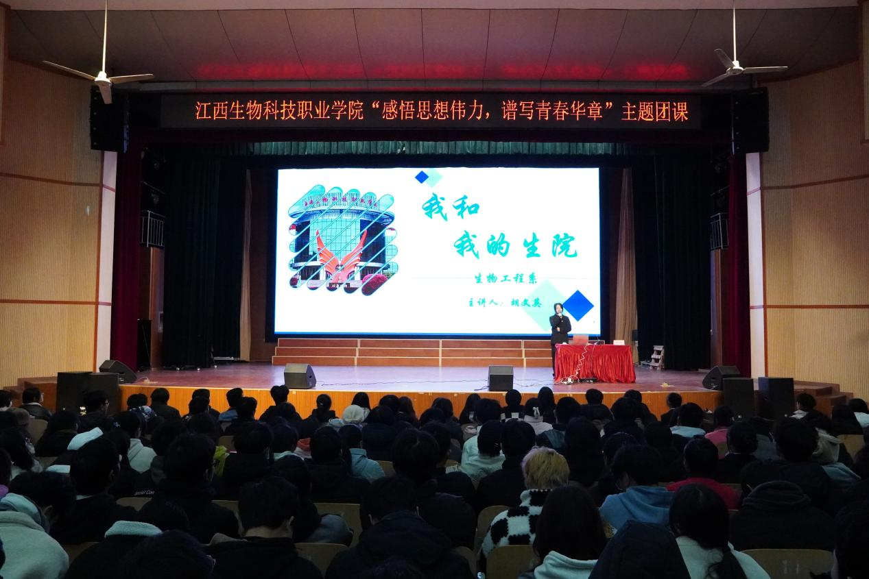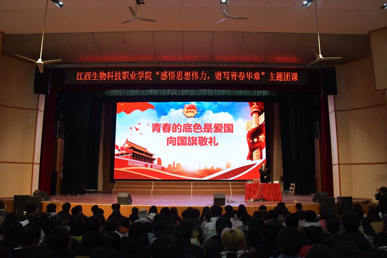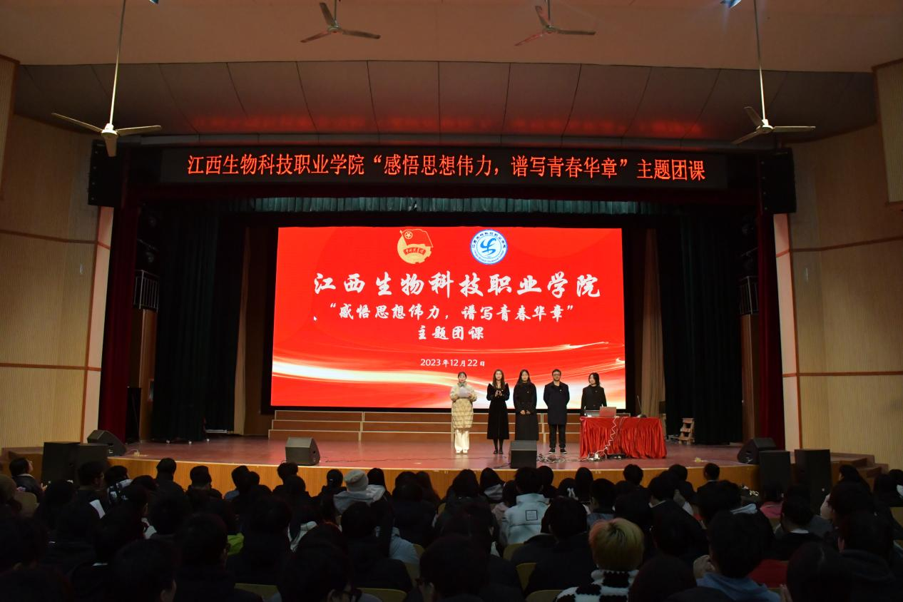 12月22日下午,万象城官网团委在大礼堂组织开展“感悟思想伟力,谱写青春华章”主题团课。团课由信息工程系、机电工程系、教育艺术系三位青年教师以及生物工程系学生代表担任主讲人,各系团员代表800余人参加。