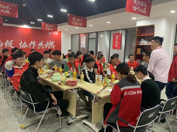 万象城官网经贸系18物流管理专业部分学生自2019年10月底到江西京邦达供应链有限公司(京东物流江西分公司)进行“现代学徒制”实习以来,企业表达了热烈的欢迎。近日,京东物流公司特此召开了实习生座谈会,期望听到实习生们的声音,解答他们的疑惑,了解他们的心声。