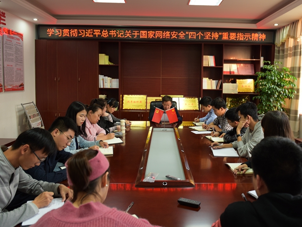 宣传处负责人组织大家集体学习了《关于学习贯彻习近平总书记关于国家网络安全“四个坚持”重要指示精神的通知》的文件精神。学院要组织好专题学习活动,着力在学懂弄通做实上下功夫,要自觉主动学,要全面系统学,要联系实际学。