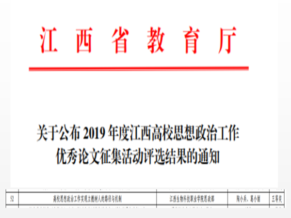 我校荣获2019年度江西省高校思政工作优秀论文三等奖
