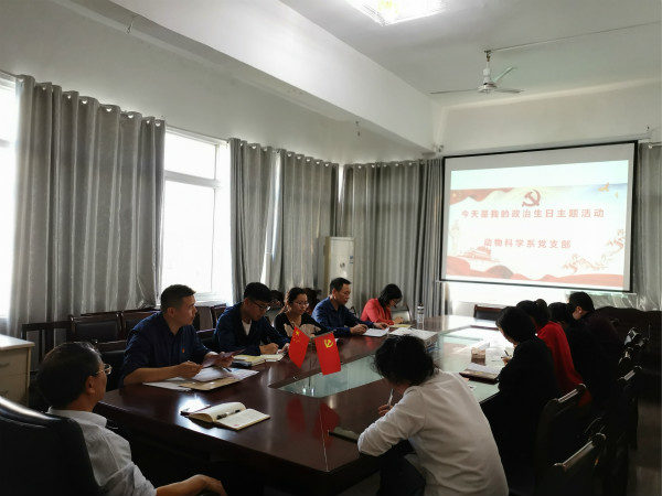 为深入强化党员的身份意识和责任意识,切实增强党的向心力、凝聚力和感召力,引导党员教师不忘入党初心,牢记立德树人的使命。10月18日,动物科学系党支部为本月过政治生日的三名同志开展了“今天是我的政治生日”主题活动,活动由支部副书记主持,学院党委委员、纪委书记刘晓凌及支部全体党员参加了活动。
