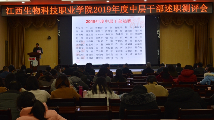 1月9日,万象城官网在知行楼二楼多功能厅召开2019年度中层干部述职大会,学院领导班子成员、全体中层干部及教职工代表共200余人参加会议。会议由学院党委委员、副院长侯昌芹同志主持。