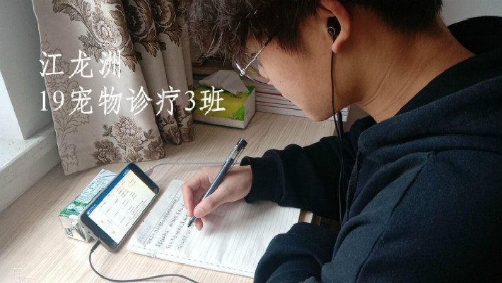 2019级宠物诊疗3班江龙洲说,老师采取的是线上教学,提前十分钟签到后,我们就进入了正式学习。第一节课内容比较简单,老师是以语音的方式进行讲解,学生看着课件,听着老师语音,基本上和在学校面对面授课无差异。中间老师也会抽查学生进行提问,或者在群里集体讨论。他表示,线上教学让同学们在家里就能轻松学习,实现了停课不停学,教学质量不减。为老师点赞!