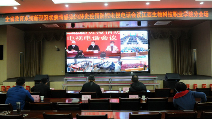 1月30日,学院党委书记、院长曹端荣等学院防疫工作领导小组成员收听收看全省教育系统新型冠状病毒感染的肺炎疫情防控工作电视电话会议。