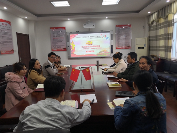 11月25日,思政部党支部开展江西高校“十百千宣讲团”宣讲党的十九届四中全会精神活动。学院副院长侯昌芹面向思政部党支部全体党员、思政课教师深入解读了十九届四中全会基本情况以及《中共中央关于坚持和完善中国特色社会主义制度 推进国家治理体系和治理能力现代化若干重大问题的决定》和习近平所作的《关于〈中共中央关于坚持和完善中国特色社会主义制度 推进国家治理体系和治理能力现代化若干重大问题的决定〉的说明》的主要精神。