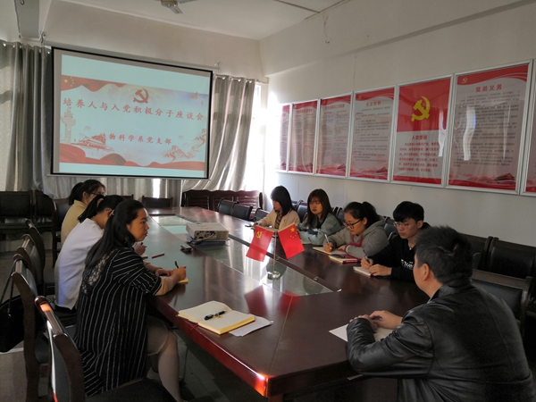 为严格落实党员发展流程,多方面了解入党积极分子近期的思想、学习、生活和工作上取得的进步,把学习贯彻习近平新时代中国特色社会主义思想和习近平总书记关于“不忘初心、牢记使命”主题教育的重要讲话精神不断引向深入,11月19日,动物科学系党支部在博学楼4楼会议室召开以“端正入党动机,争做合格党员”为主题的入党积极分子座谈会。会议由党支部副书记主持。