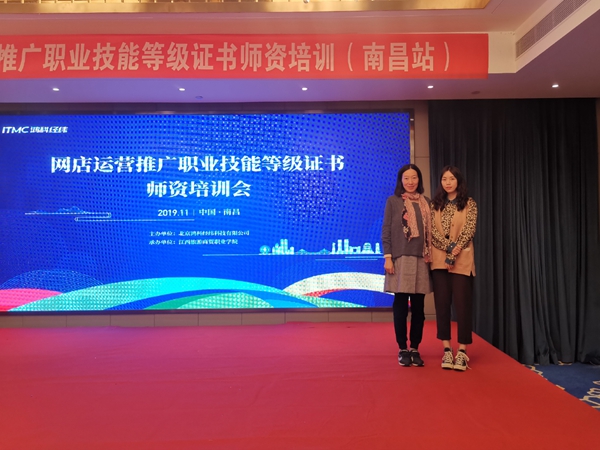11月9日至13日,由北京鸿科经纬科技有限公司主办,江西旅游商贸职业学院承办的网店运营推广职业技能等级(1+X)证书师资培训会在南昌召开。来自全国各地50多所学校100多位教师参会,经济贸易系物流电商教研室两位专业教师参加了培训会。