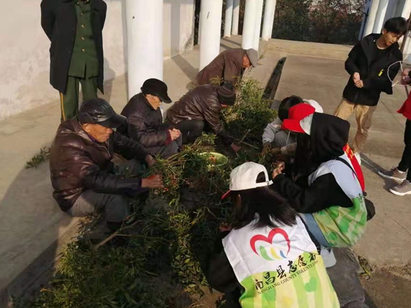 活动期间,各志愿者各司其职,主动帮老人们打扫屋子,清理杂草、陪老人晒太阳、聊天、下棋、玩纸牌……其后还为老人们表演特色节目,活动精彩纷呈。整个养老院呈现出一片欢乐祥和的景象。活动结束前,我们与老人们一同拍照留影,并送老人们回屋休息,与老人们告别。