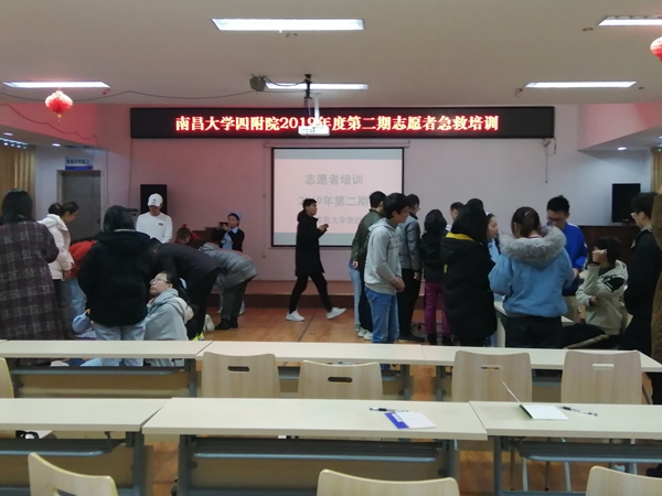 培训课上,南昌大学第四附属医院医护人员对 “心肺复苏——基础生命支持”的理论知识、急救的整个流程及注意事项进行了详细的讲解,演示了气道异物的处理方法、外伤包扎止血法。在模拟练习环节,现场参训的志愿者们积极参与,掌握心肺复苏动作要领、正确处理气道异物、包扎止血等,提高应对突发情况的处理能力。