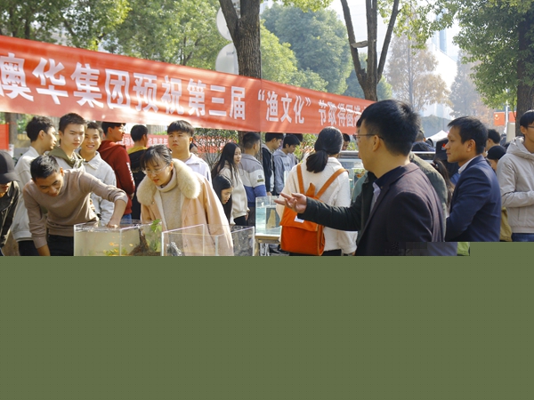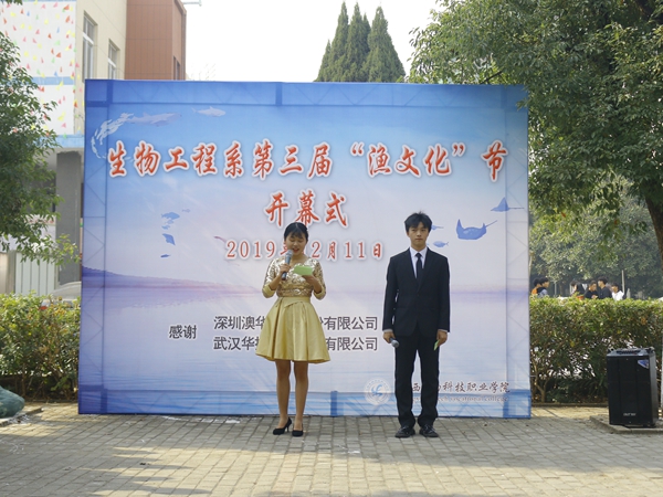 12月11日中午,万象城官网生物工程系第三届鱼文化节开幕式在学院博学楼旁举行,生物工程系负责人、水产养殖技术专业教师及300多名学生参加了开幕式,本次活动受到了江西澳华农牧科技有限公司和武汉华扬动物保健集团的大力支持。