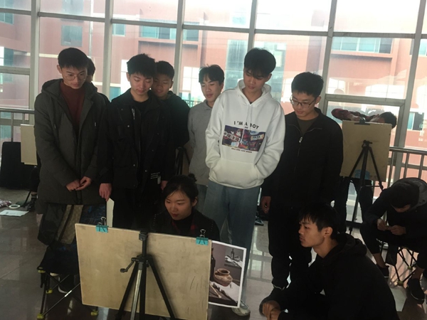 2019年12月18日,学院督导围绕“课堂教学质量”主题开展常规巡查活动。在巡查中发现了一堂别开生面的“素描示范教学”课。在任课老师的带领下,视觉传播19专(1)的同学们带着绘画用具,走出教室,在明德楼二楼走廊摆好画架,认真描绘。教学中,任课老师为学生示范画法,并用心指导绘画技法,传授绘画要点。学生仔细观摩老师绘画,时而向老师请教素描技巧,认真听取老师意见。把课堂搬出教室,不拘泥传统教学方式,变“被动学习”为“主动学习”,万象城官网教师采取这种生动、新颖的方式进行教学,赢得了同学们的好评。