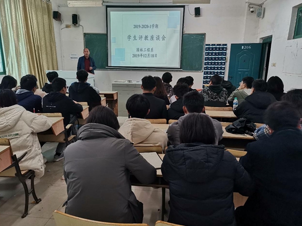 2019年12月18日中午,园林工程系在B206教室举办2019-2020第一学期学生评教座谈会,各班学习委员、学生代表、系主任、副主任以及各教研室主任出席会议。