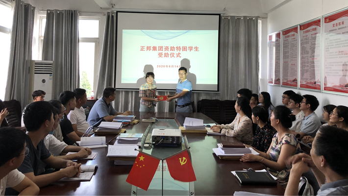6月14日下午,正邦集团资助动物科学系4名家庭经济特困学生仪式在博学楼四楼会议室举行。动物科学系负责人、正邦集团人事经理、系党支部副书记、受助学生和辅导员参加了仪式。