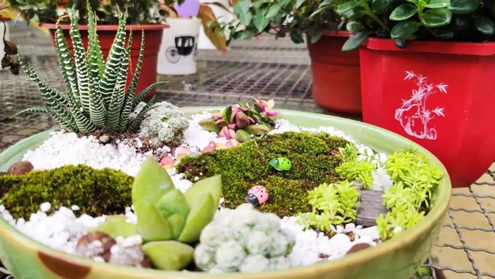 实训中,指导老师现场讲解微景观盆景的制作步骤及注意事项,从构思、选材、创作等步骤进行详细说明。依据讲解的内容,学生能熟练创作微景观作品。此次实训理论与实践相结合,为盆景与插花技艺、花卉养护栽培等课程内容打下坚实基础。(文图/骆佳仪)