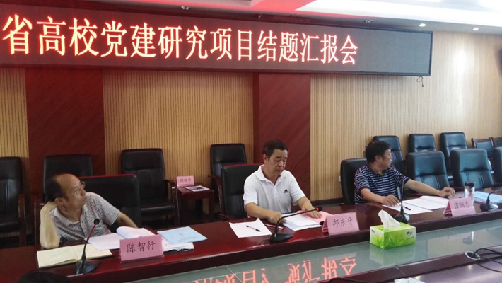 本批办理结项的省高校党建研究项目分别是余德润教授主持的“高校基层党组织‘四联系四知道’管理方法的研究”和柯梁副教授主持的“井冈山精神融入高校‘双创’教育的路径研究”。项目组负责人分别介绍了课题研究的工作情况、回答了专家组的提问。