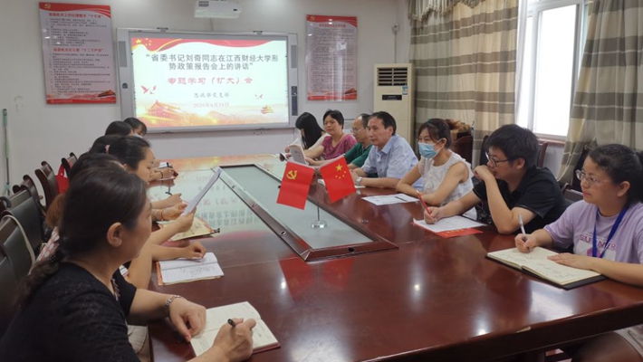 6月24日,思政部党支部召开扩大会议,专题学习省委书记刘奇同志在江西财经大学形势政策报告会上的讲话精神。思政部全体党员、教师参加会议。